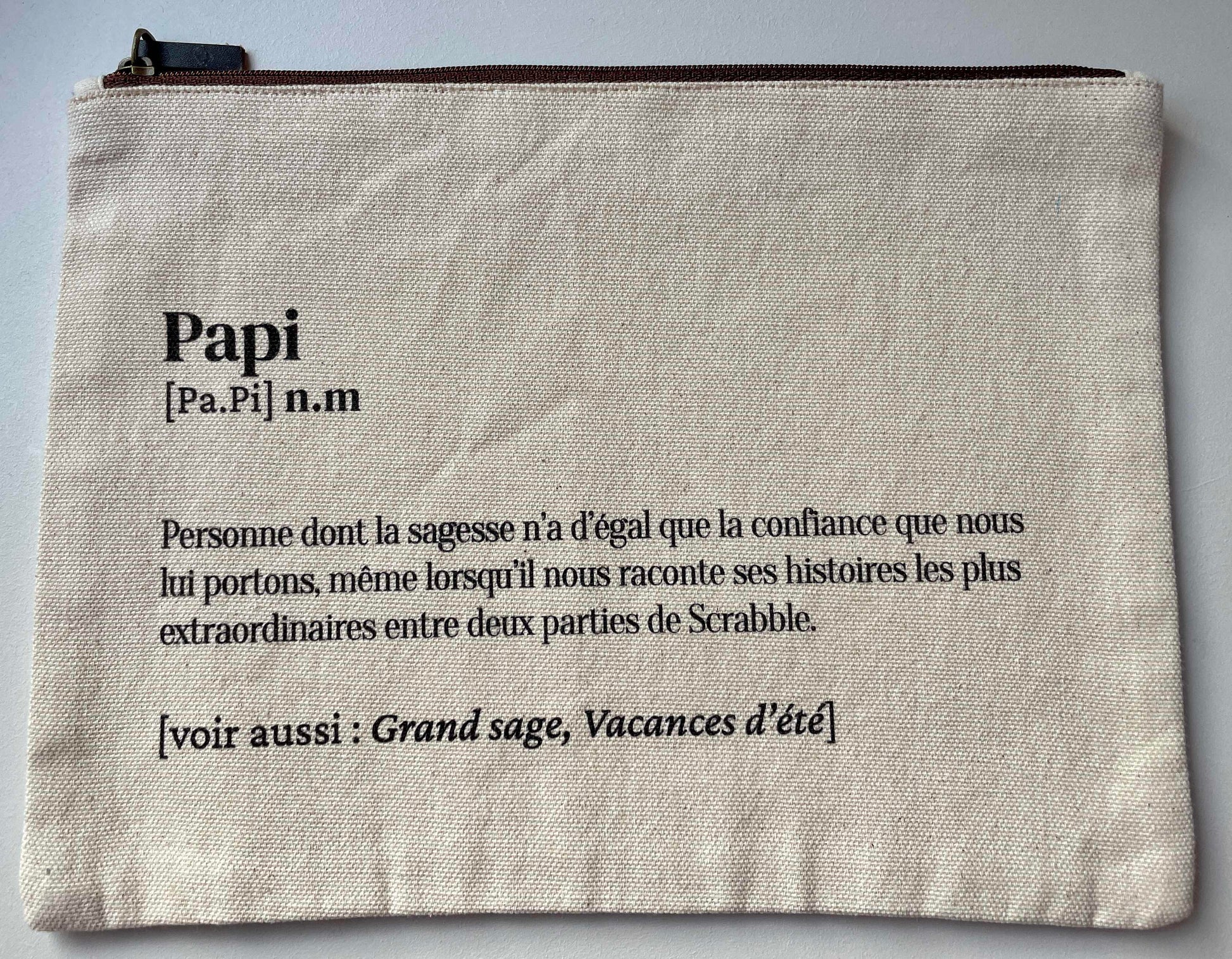 Offrez à votre papi une trousse aussi authentique que lui ! Confectionnée en coton naturel, cette trousse allie simplicité et charme intemporel. Parfaite pour organiser ses petits outils, ses lunettes ou ses trésors de bricoleur, elle accompagne tous ses projets. Un cadeau pratique et drôle que votre papi adorera !